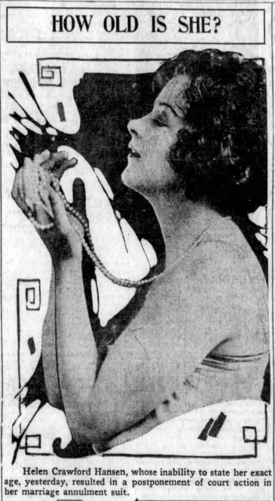 The following passage is from the narrative of the second Arbuckle trial of January–February 1922, which gets little attention in other books. In Spite Work, however, this trial is the pivot between the first and third trial in regard to defending Arbuckle and defaming Virginia Rappe. There are also witnesses who took the stand only at the second trial. The actress Helen Crawford Hansen, whom Virginia met through Al Semnacher, either as a talent manager or in a more risqué capacity. Although Miss Hansen is a footnote in the contemporary reportage, the trial transcript provides a glimpse of her and the real Virgnia Rappe, as well as their Los Angeles in 1921. The following passage might end up on the cutting floor. (For more about Miss Hansen, there is an earlier post.)